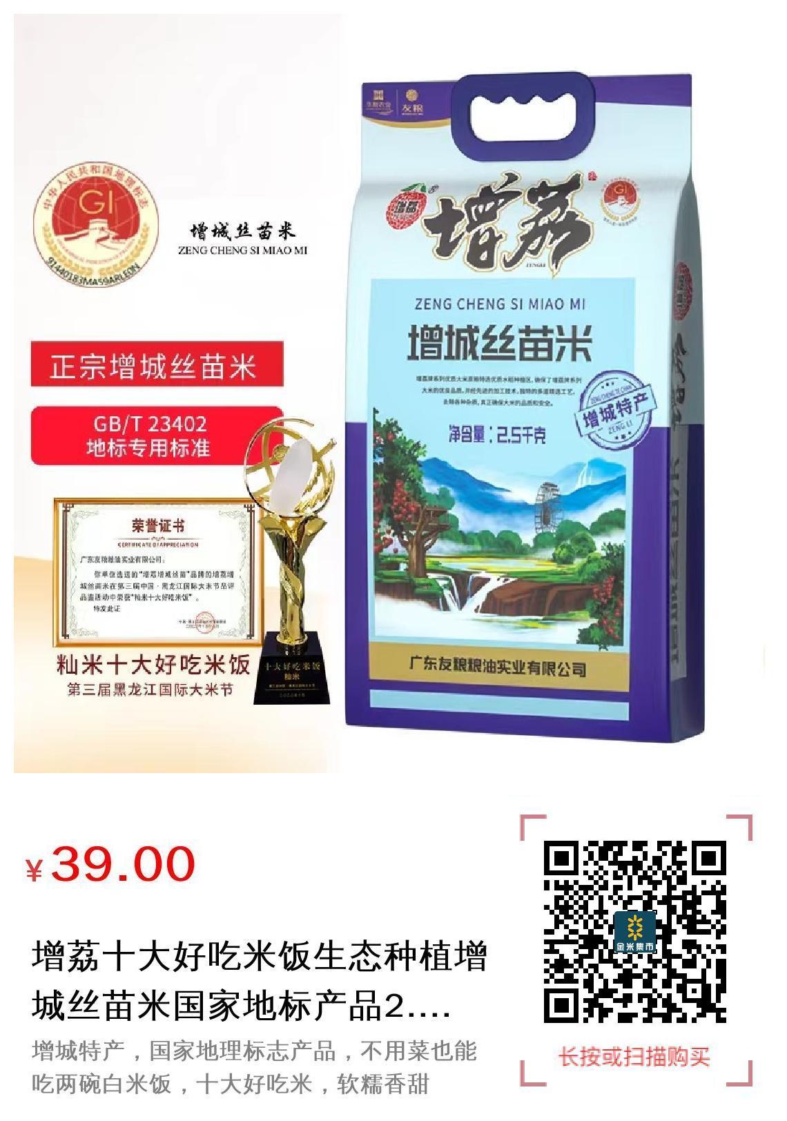 推广 现金/积分 增荔十大好吃米饭生态种植增城丝苗米国家地标产品2.5kg