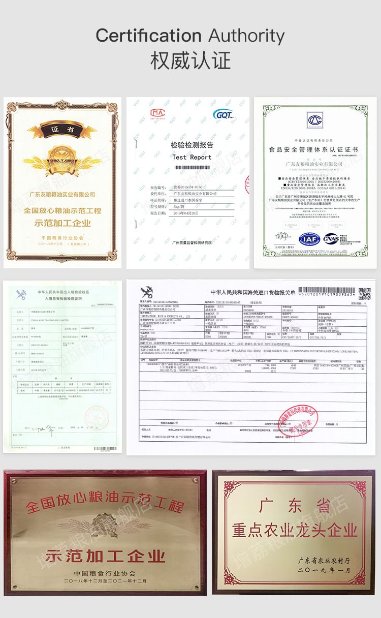 公司现有标准仓库6幢,筒仓16座,总仓容8万吨。公司在东莞、增城、从化拥有生产基地,年加工能力16.5万吨,并投资数百余万元设立高标准的粮食质量安全检测实验室,确保质量和安全。公司被广州市工业和信息化局认定为广州制造业骨干企业,中国粮食行业协会评为“全国放心粮油示范加工企业”“全国粮油加工行业大米加工企业50强”。