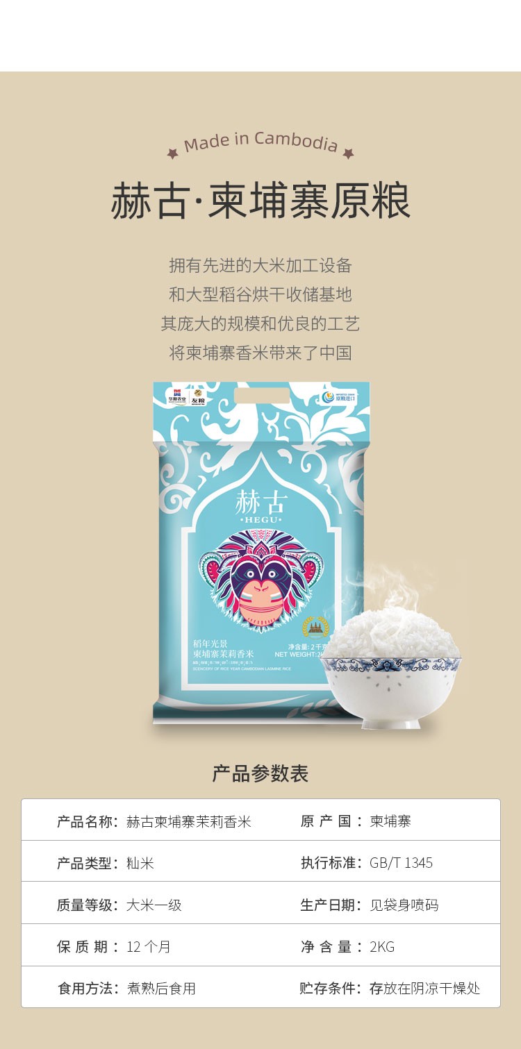 现金/积分 湄公河水灌溉赫古柬埔寨茉莉香米2kg原始种植籼米