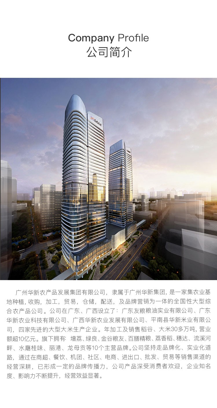 广东友粮粮油实业有限公司由中国服务业500强、广东省百强民营企业广州华新集团有限公司发起成立,是一家集农业基地种植、收购、加工、贸易、仓储、配送及品牌营销为一体的全国性大型综合农产品公司,是广东省重点农业龙头企业,广州市农业龙头企业、广东粮食行业龙头企业、广州市粮食应急保障网点、增城区粮食应急加工企业、佛山市禅城区粮食应急保障网点。公司年产值超10亿元,于2021年7月在广东股权交易中心挂牌,股权代码893037。