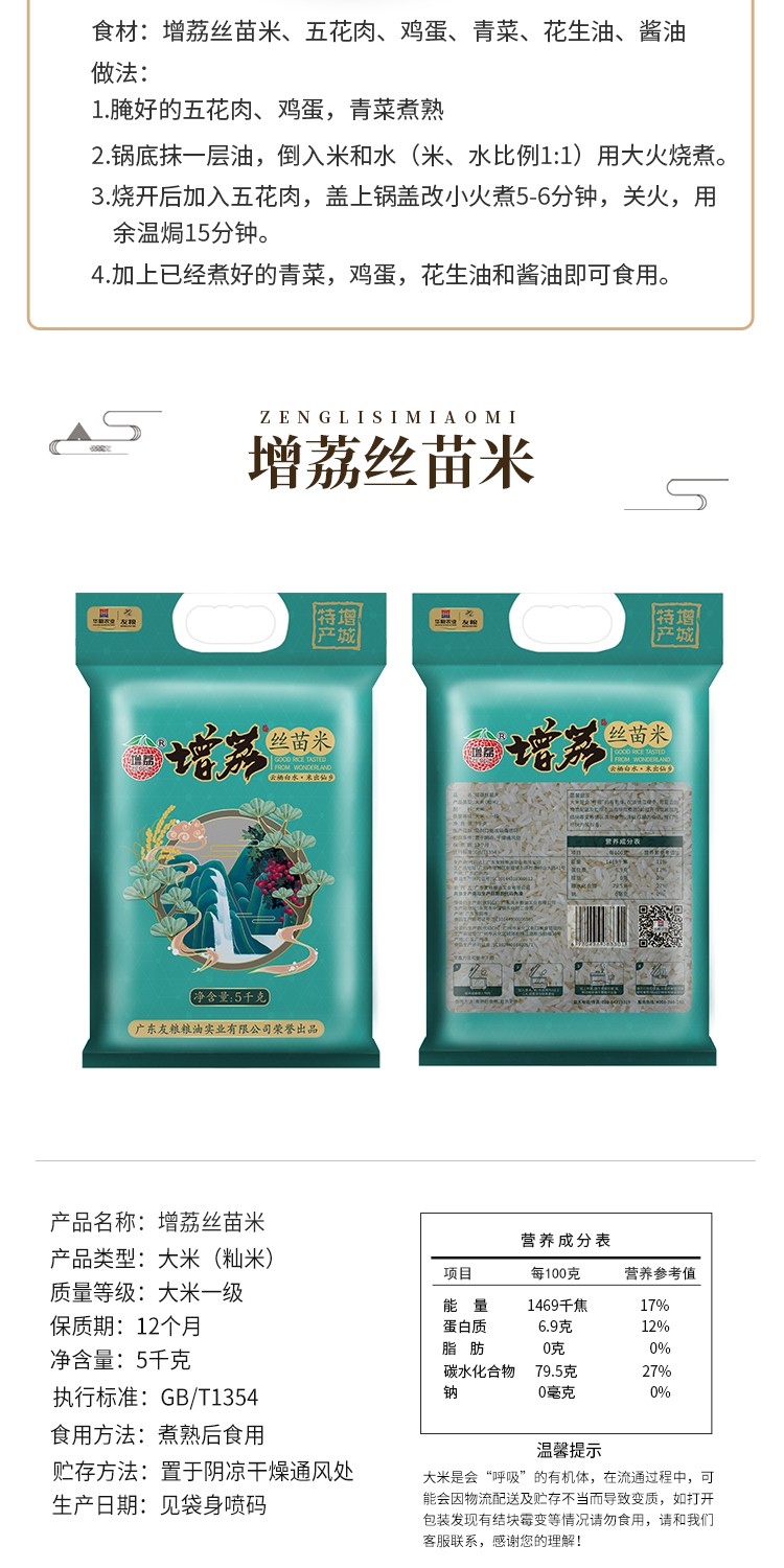 推广 现金/积分 5kg增荔丝苗米十大好吃米饭生态种植煲仔饭专用米