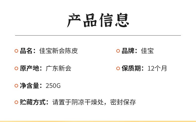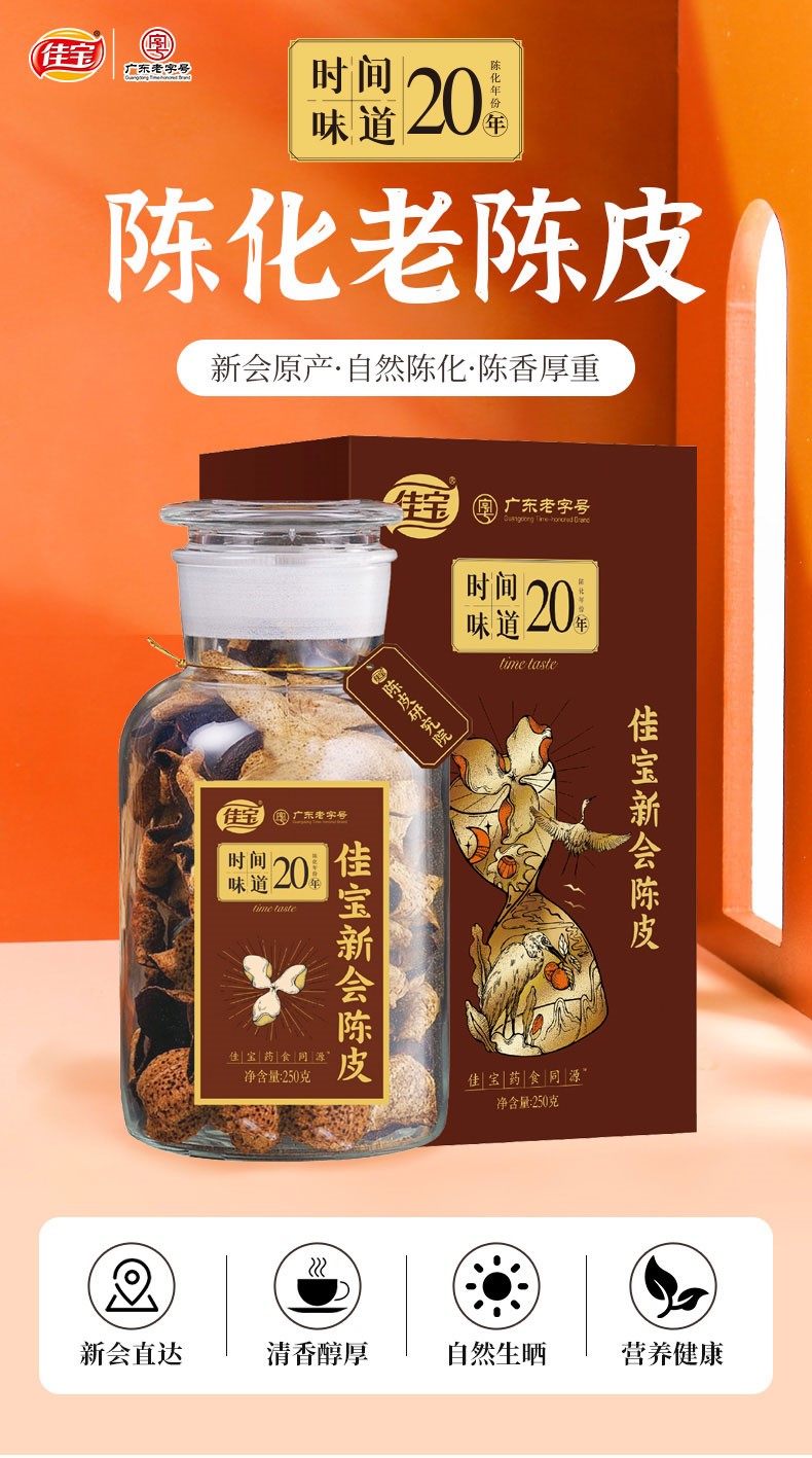 佳宝正品甄选新会陈皮(20年)250g国货精品礼盒广东老字号煲汤泡茶