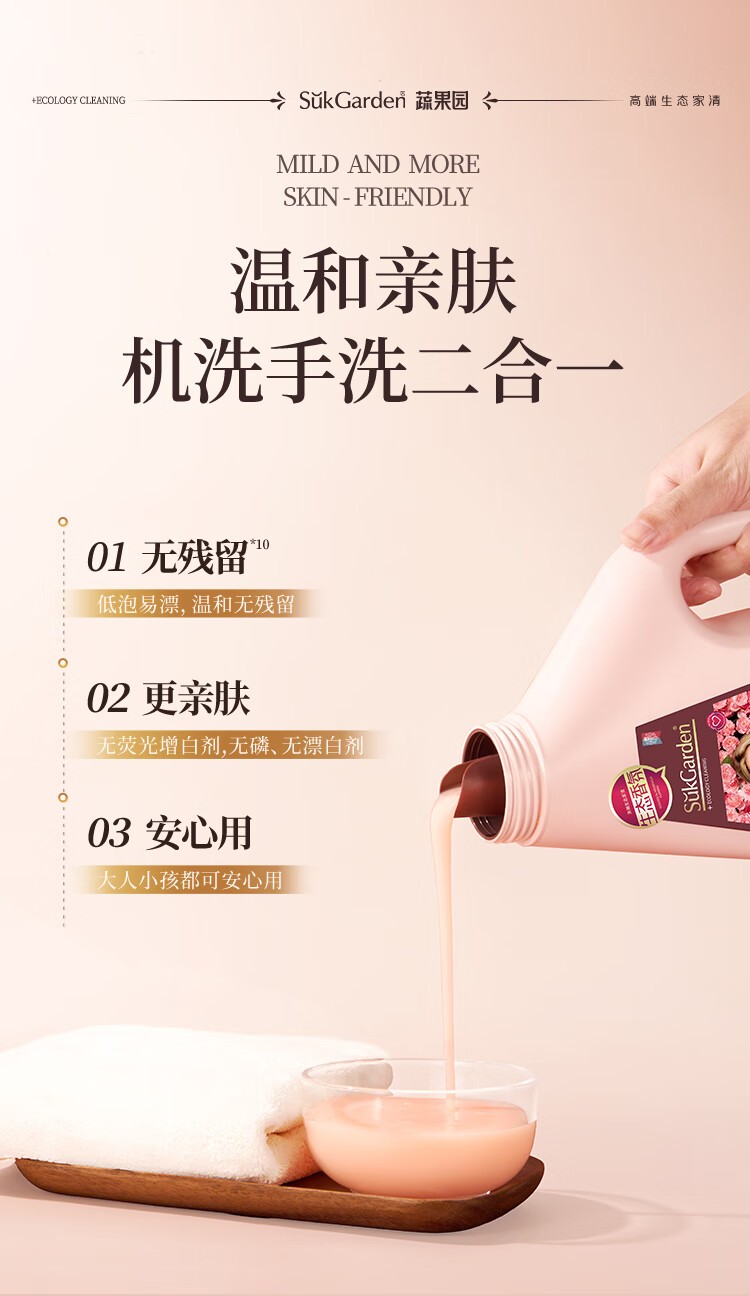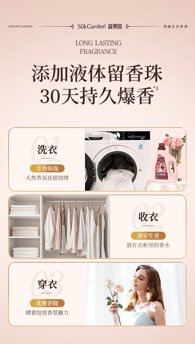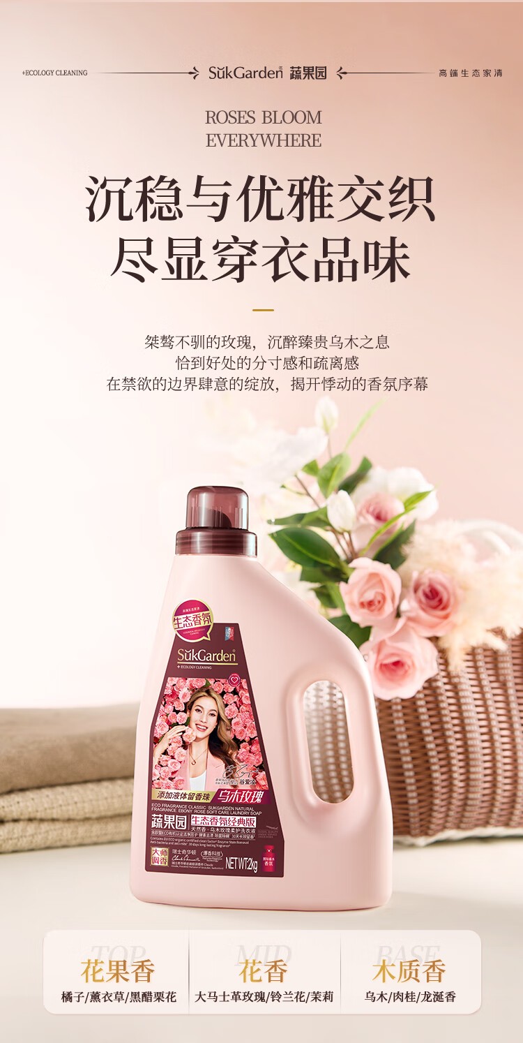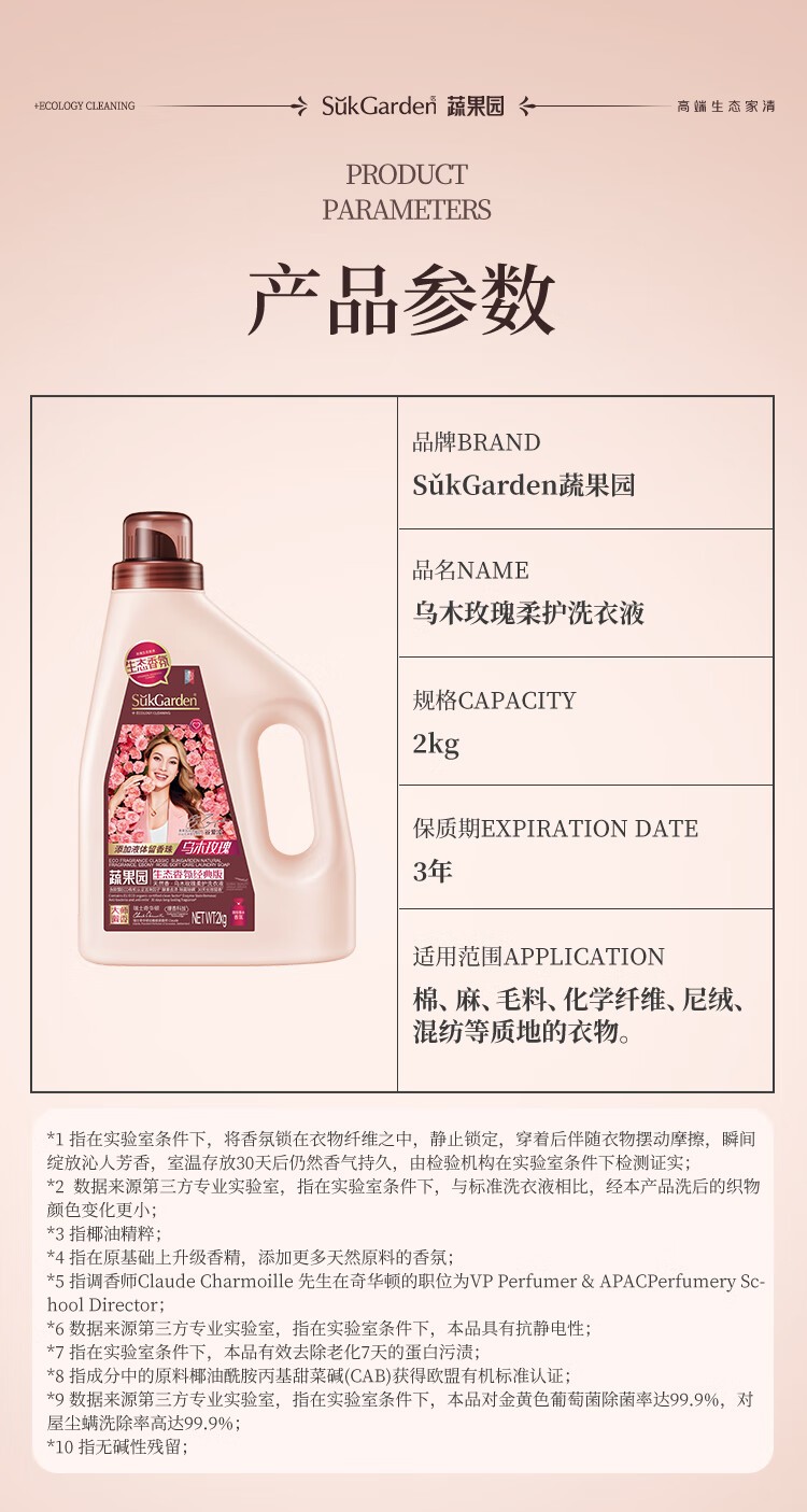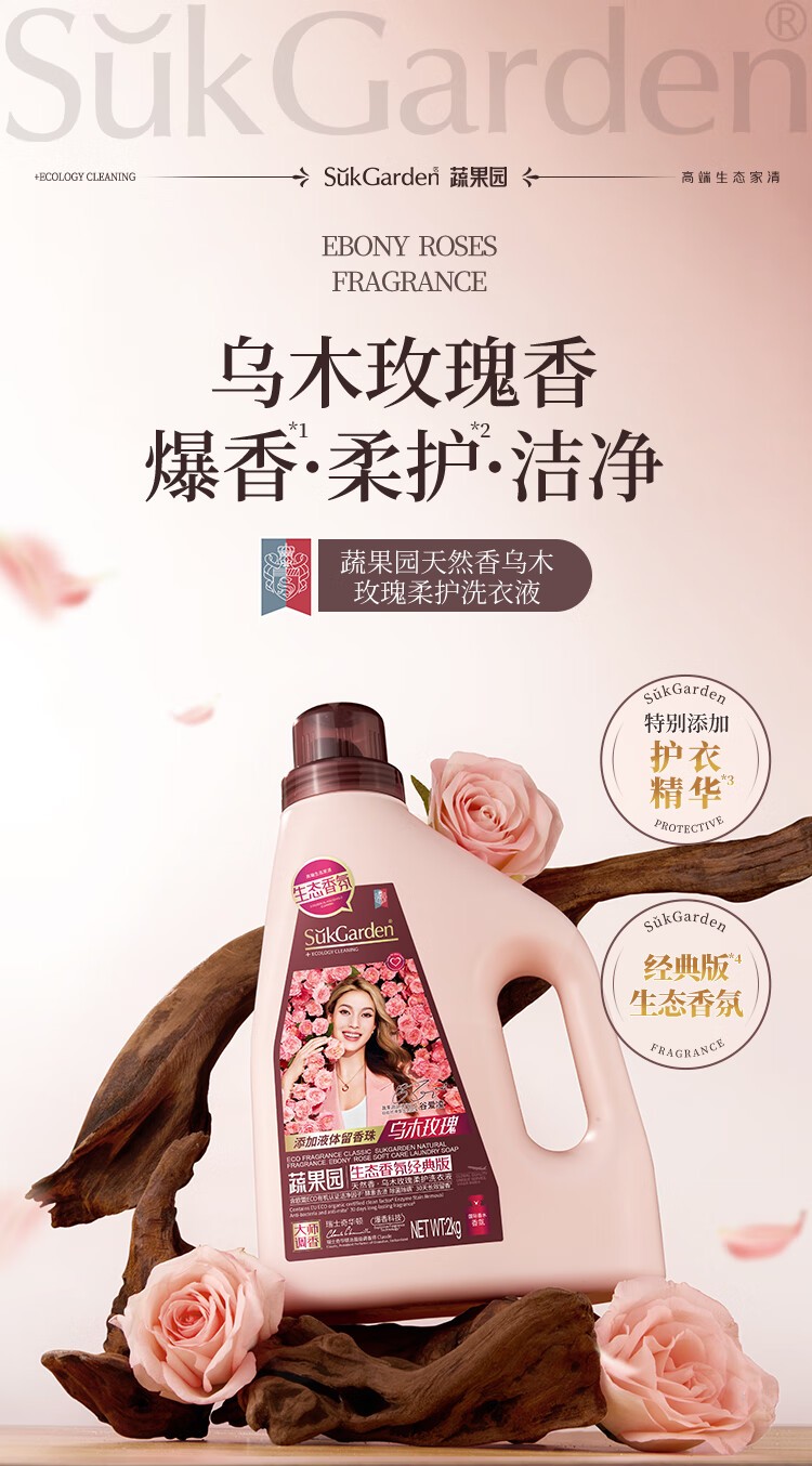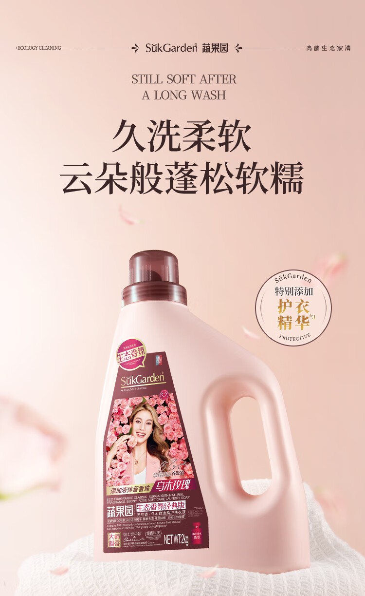 【4斤】SukGarden蔬果园天然香乌木玫瑰柔护洗衣液2kg