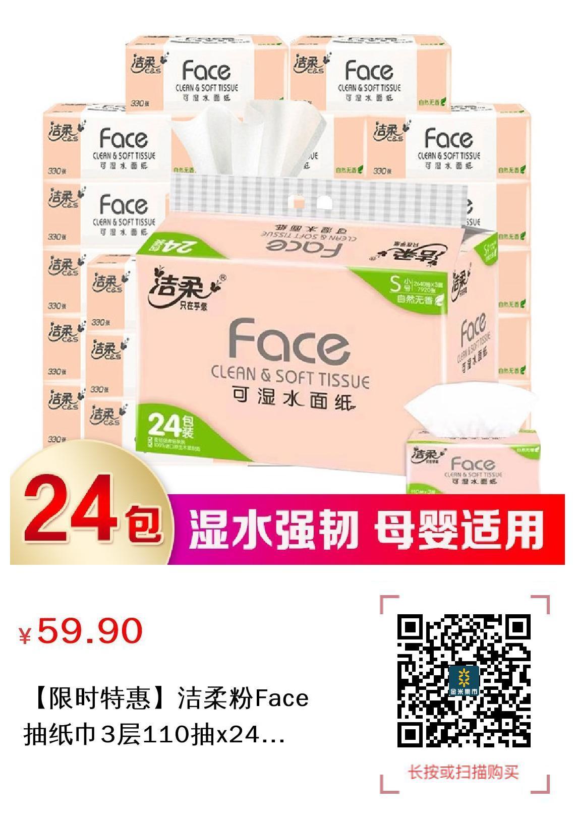 推广 【限时特惠】洁柔粉Face抽纸巾3层110抽x24包1提