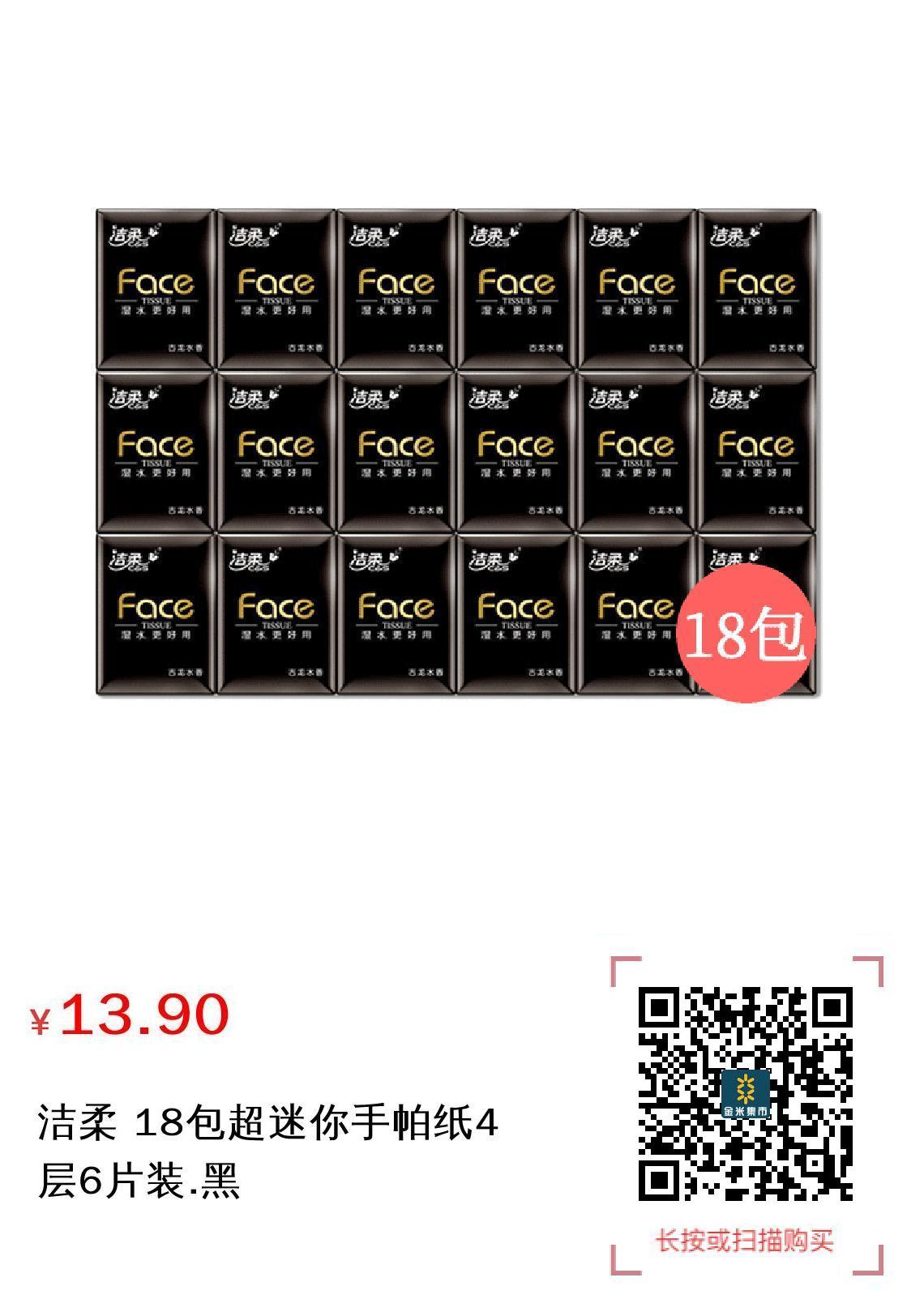 洁柔 18包超迷你手帕纸4层6片装.黑