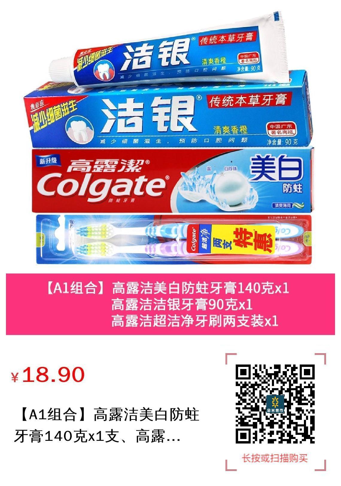 【A1组合】高露洁美白防蛀牙膏140克x1支、高露洁洁银牙膏90克x1支、高露洁超洁净牙刷两支装