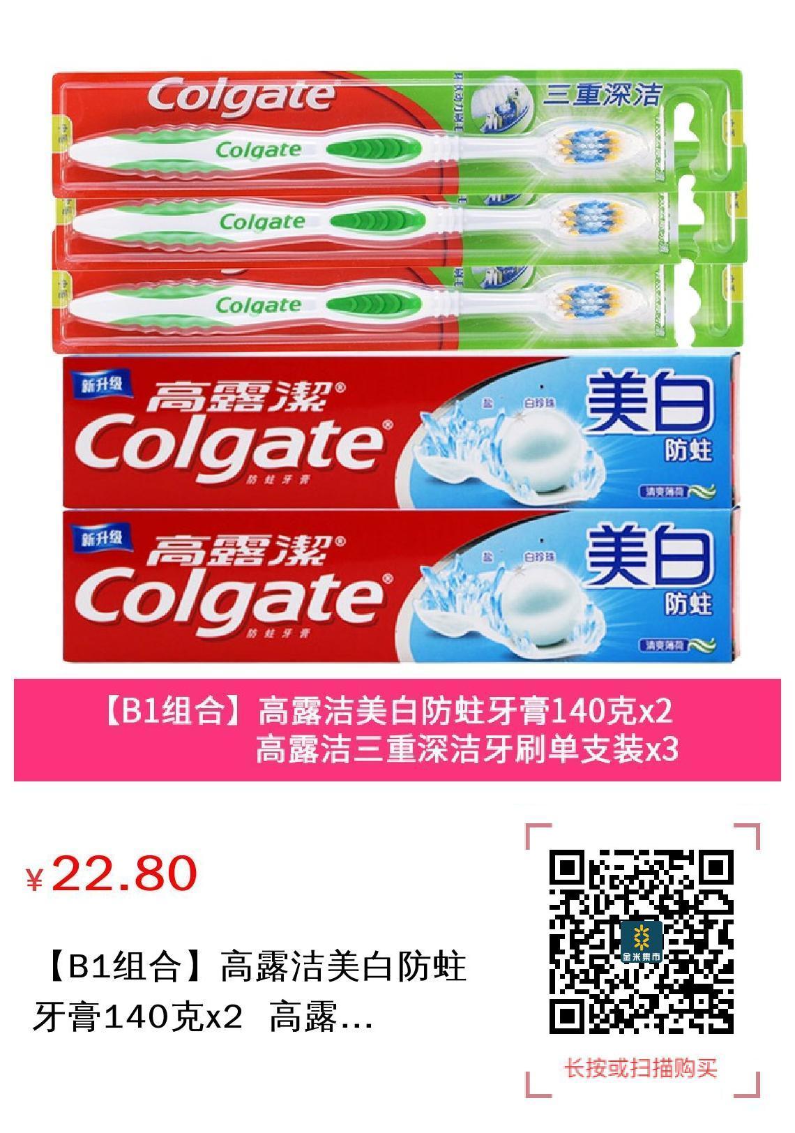 【B1组合】高露洁美白防蛀牙膏140克x2 高露洁三重深洁牙刷单支装x3