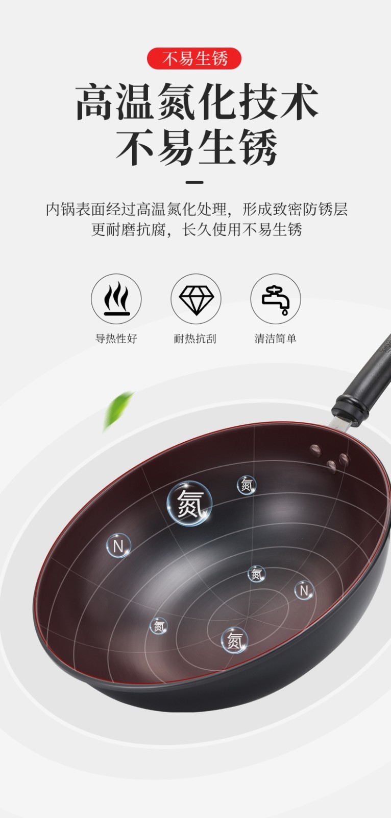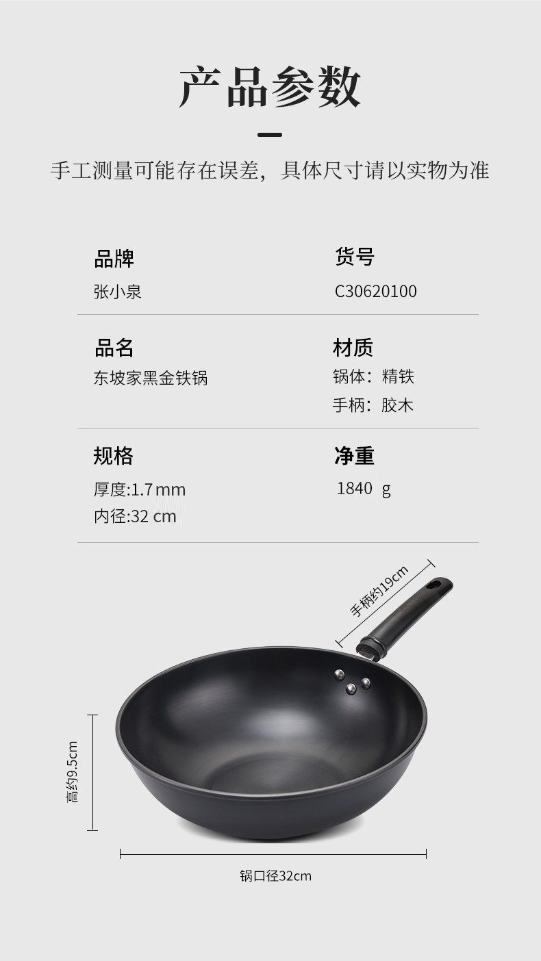 张小泉 东坡家黑金铁锅C30620100 炒锅