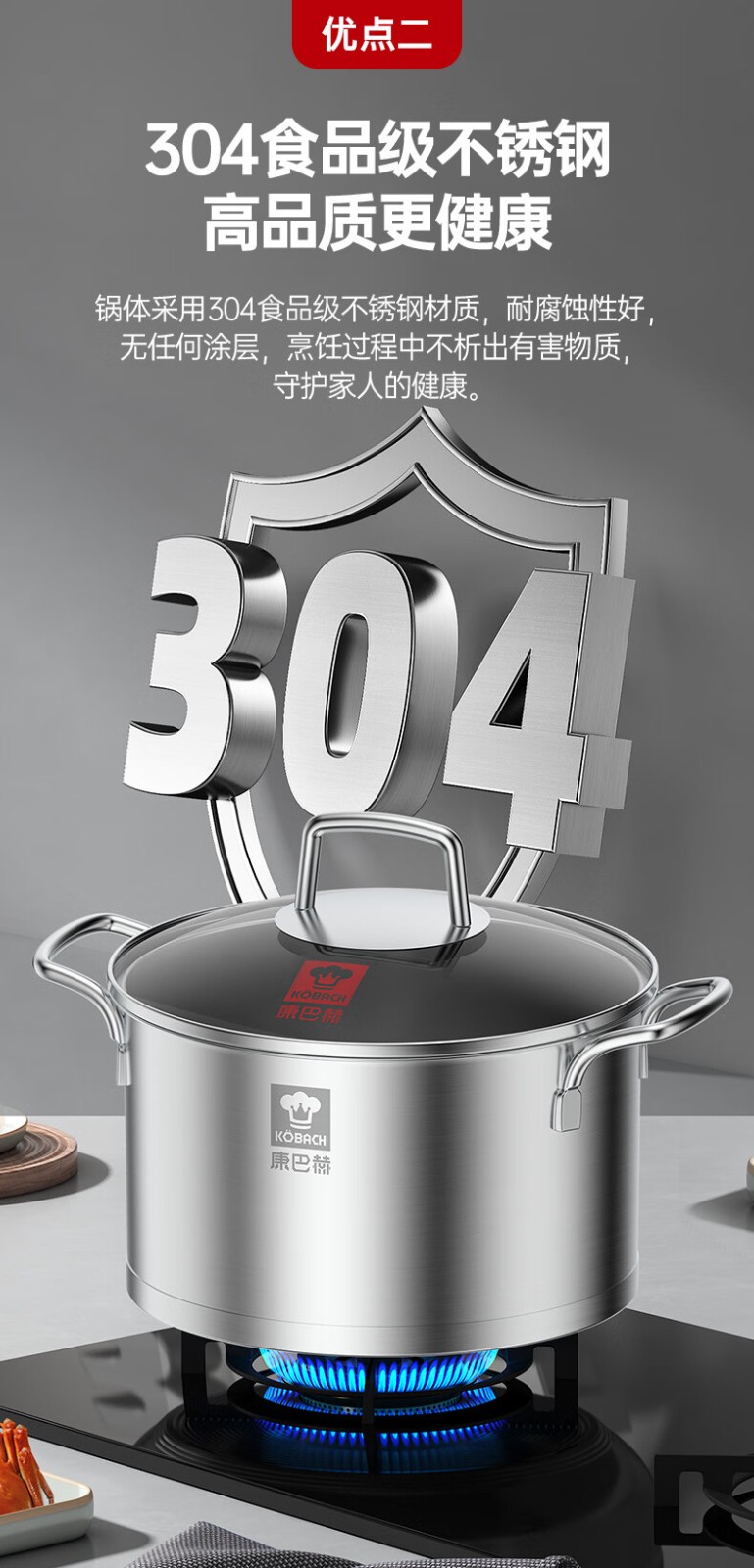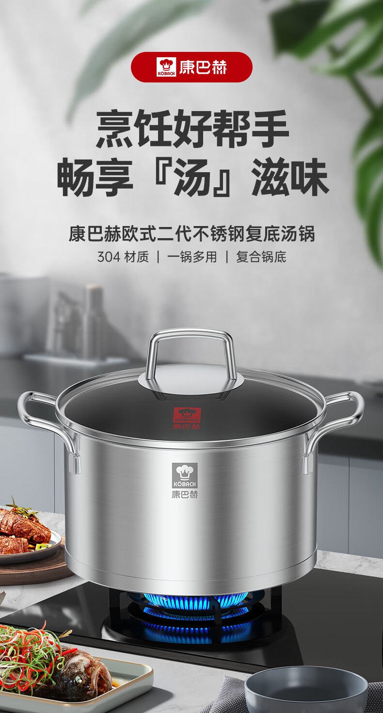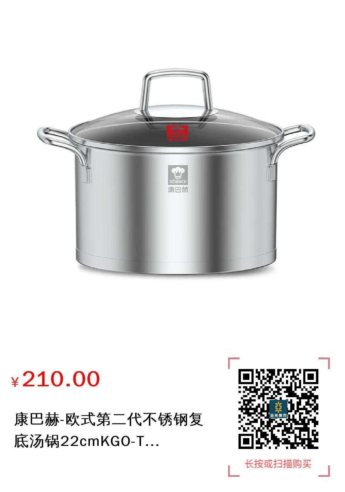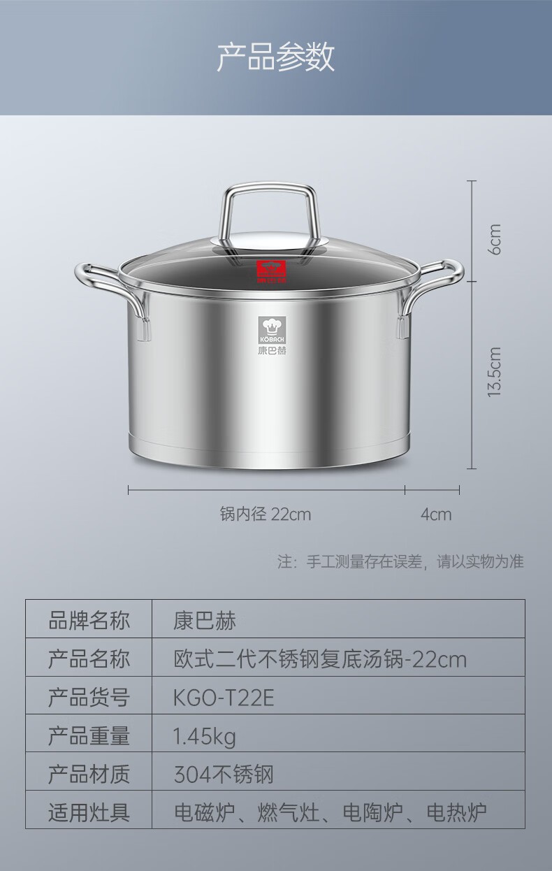 现金/积分 康巴赫-欧式第二代不锈钢复底汤锅22cmKGO-T22E