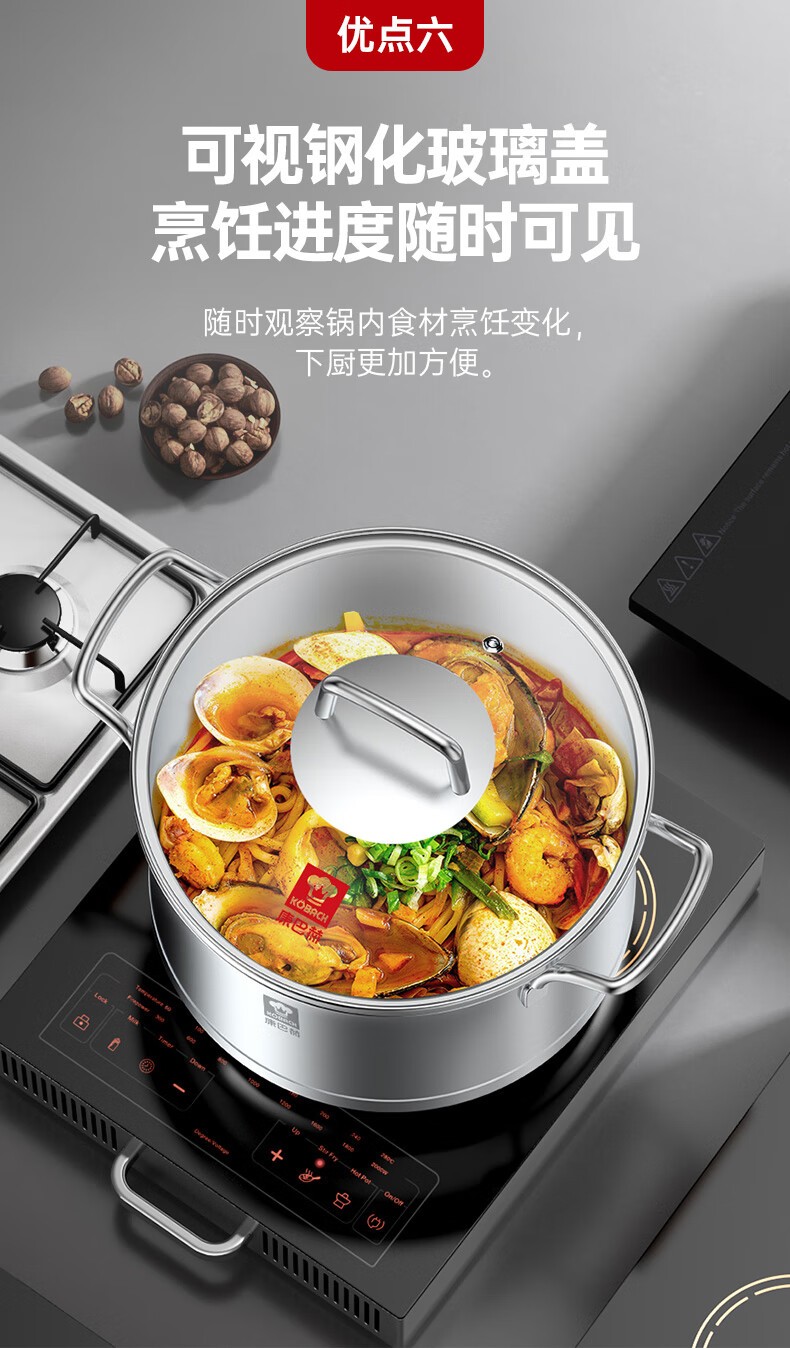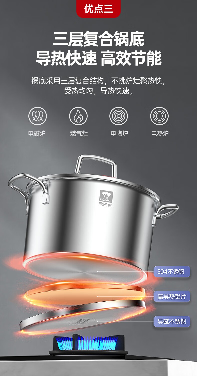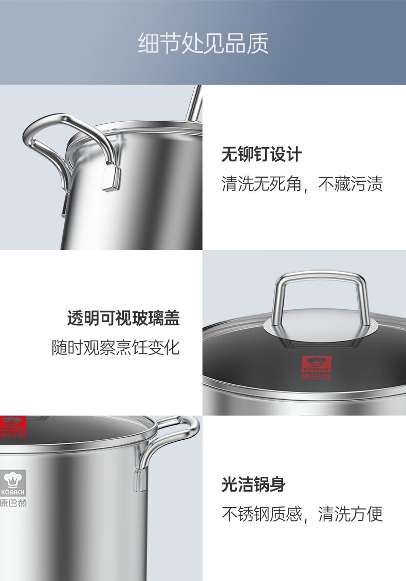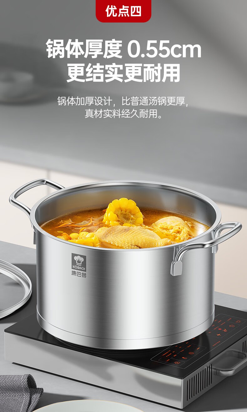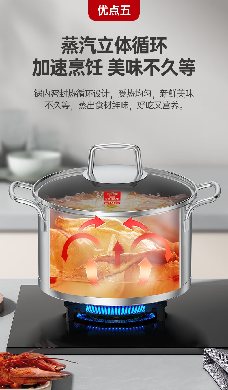 现金/积分 康巴赫-欧式第二代不锈钢复底汤锅22cmKGO-T22E