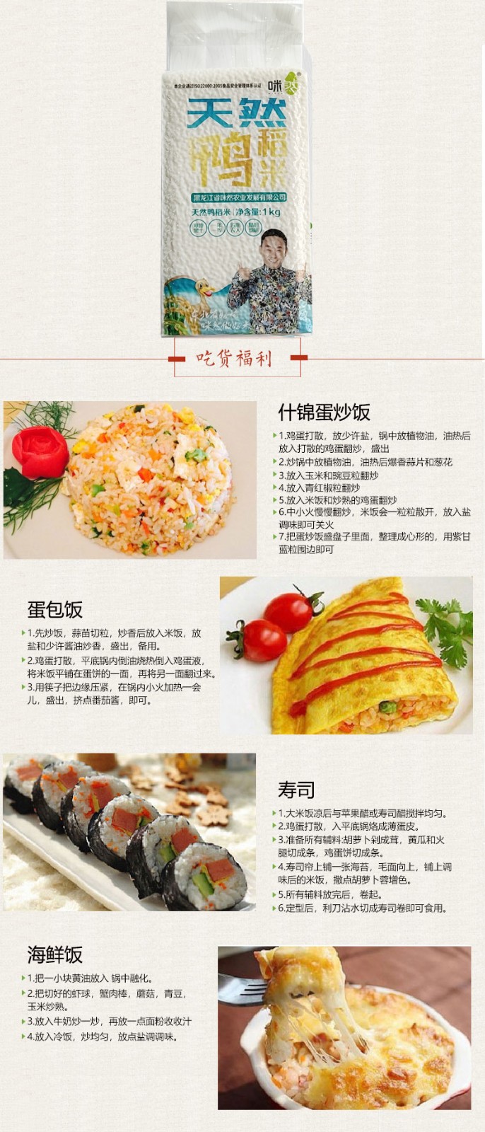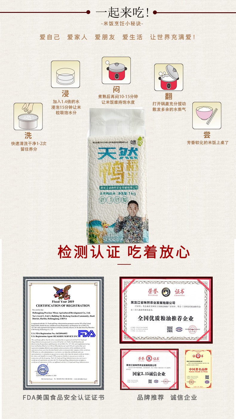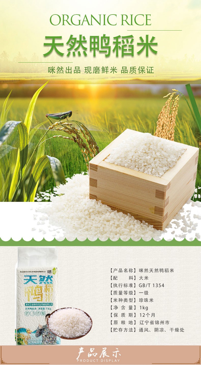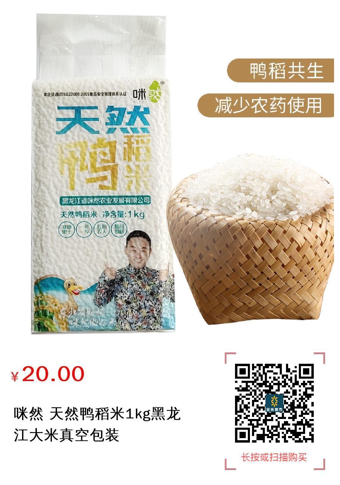 咪然 天然鸭稻米1kg黑龙江大米真空包装
