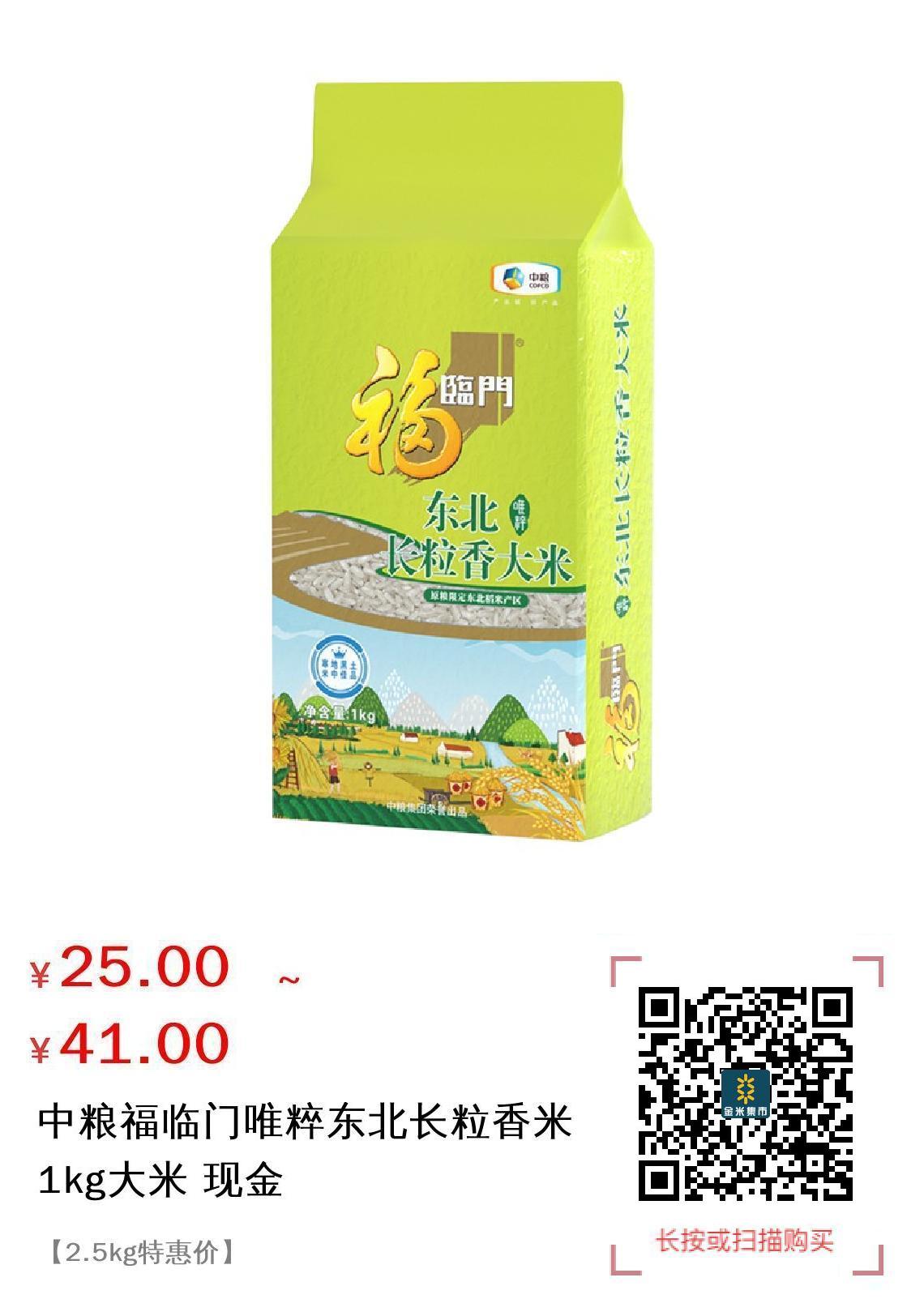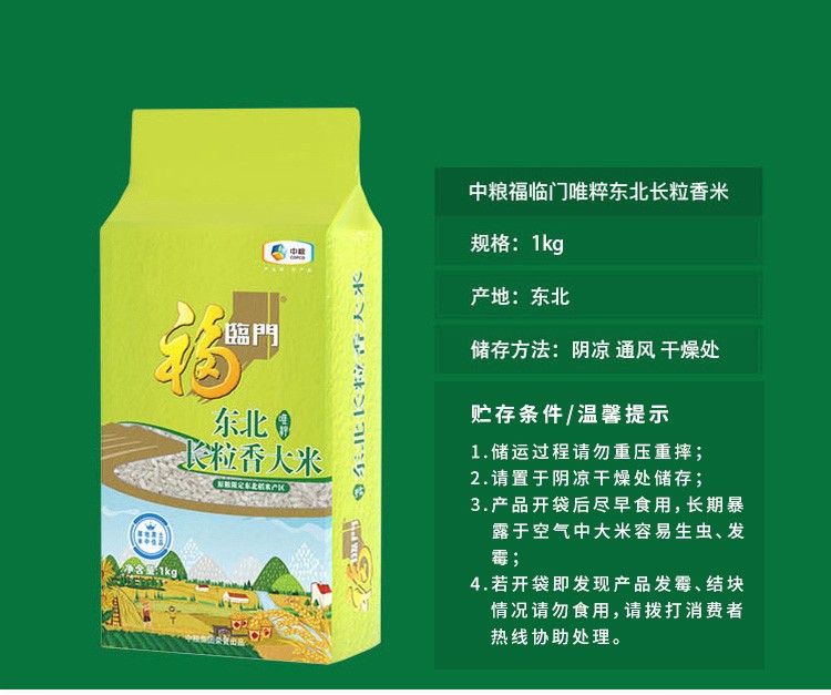 推广 中粮福临门唯粹东北长粒香米1kg大米 现金