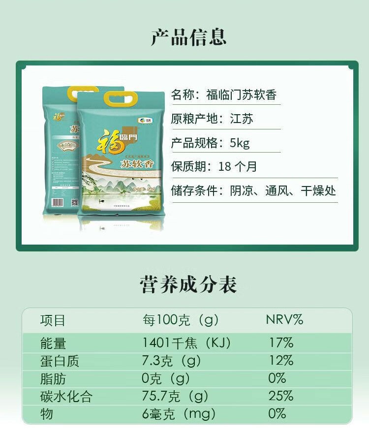 推广 【新贷户168】【10斤】中粮福临门苏软香米5kg大米