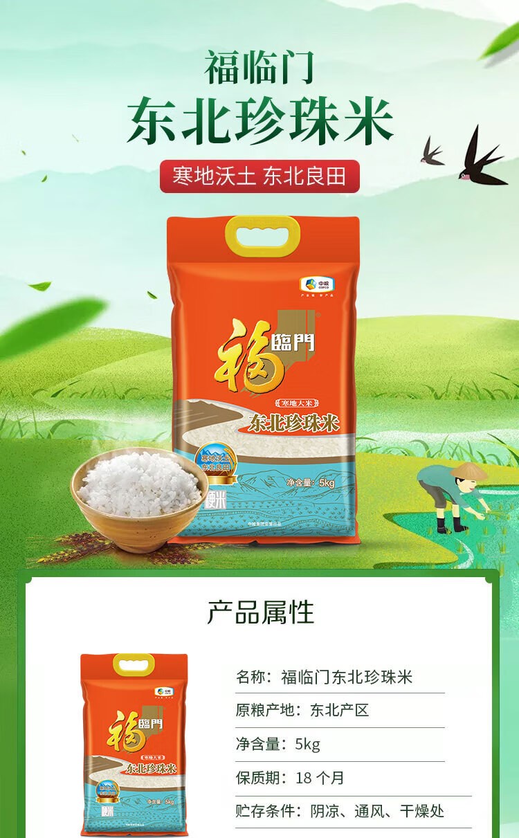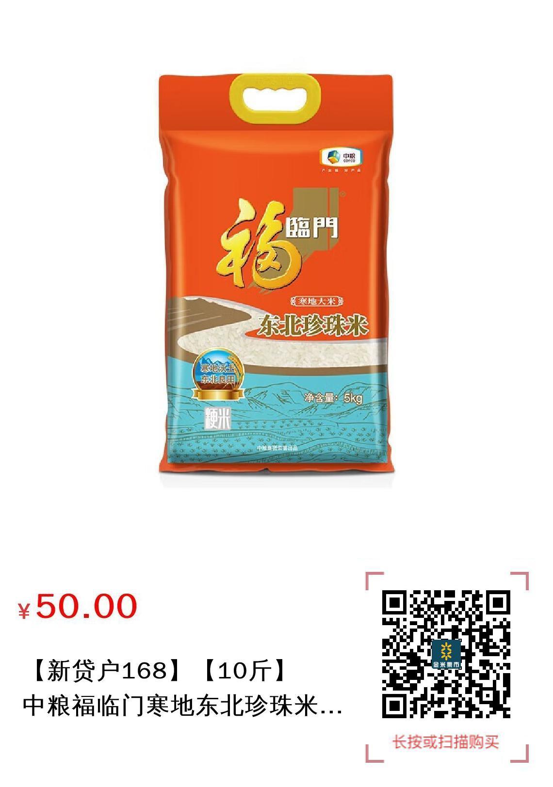 推广 【新贷户168】【10斤】中粮福临门寒地东北珍珠米5kg