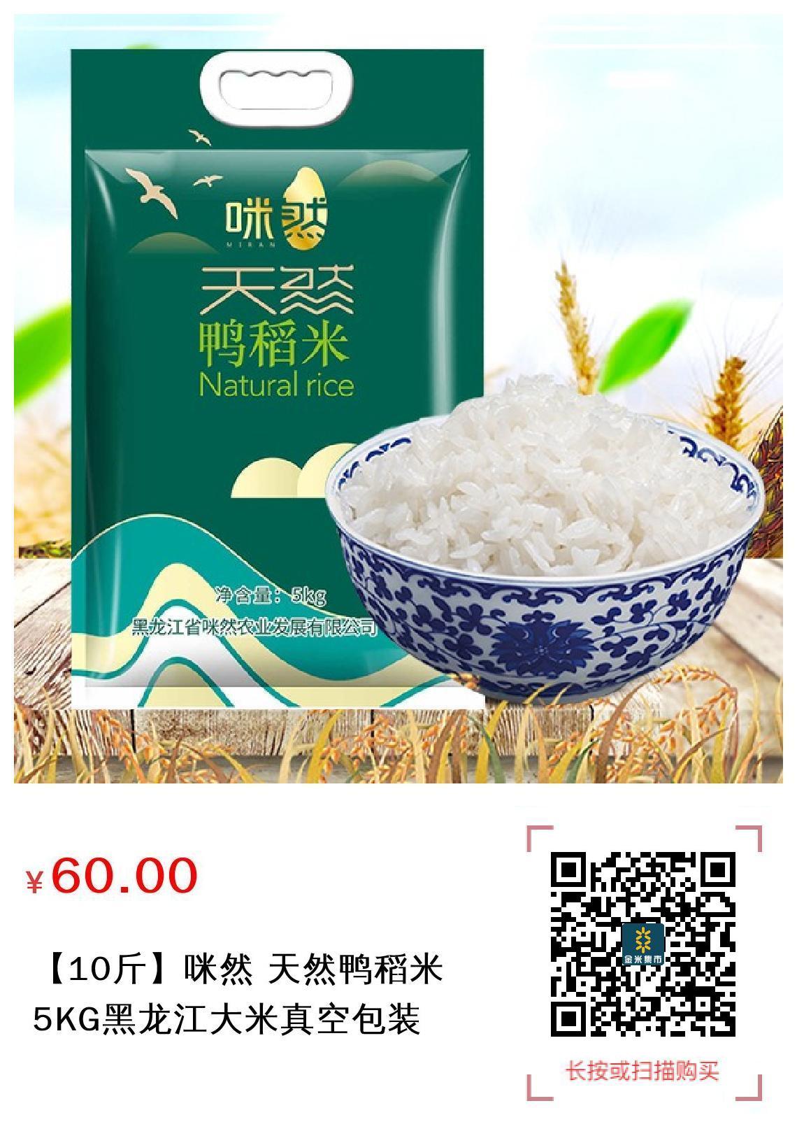 【10斤】咪然 天然鸭稻米5KG黑龙江大米真空包装