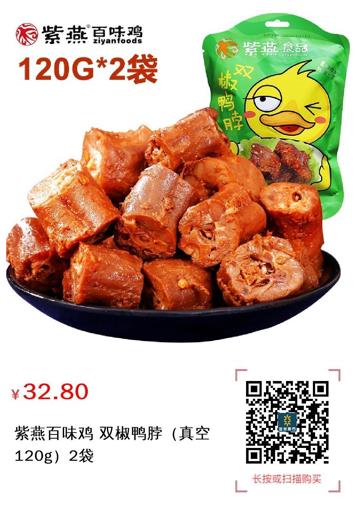 紫燕百味鸡 双椒鸭脖(真空120g)2袋