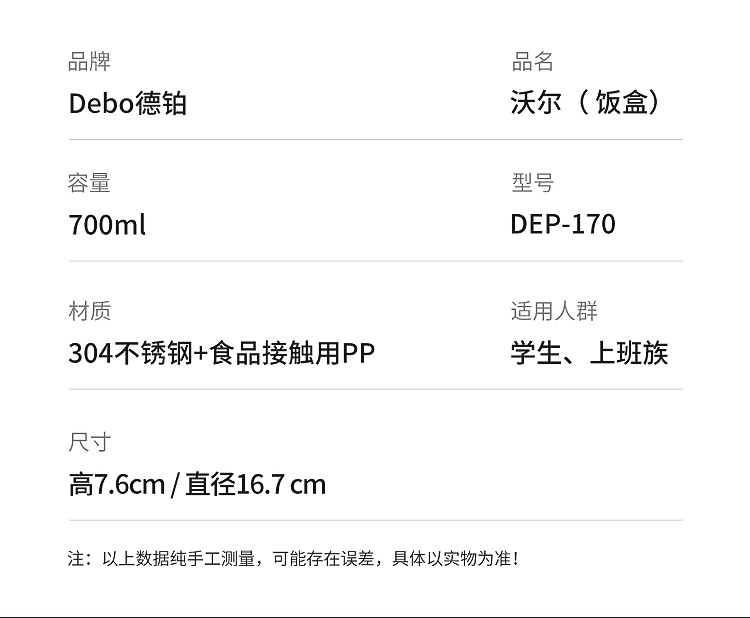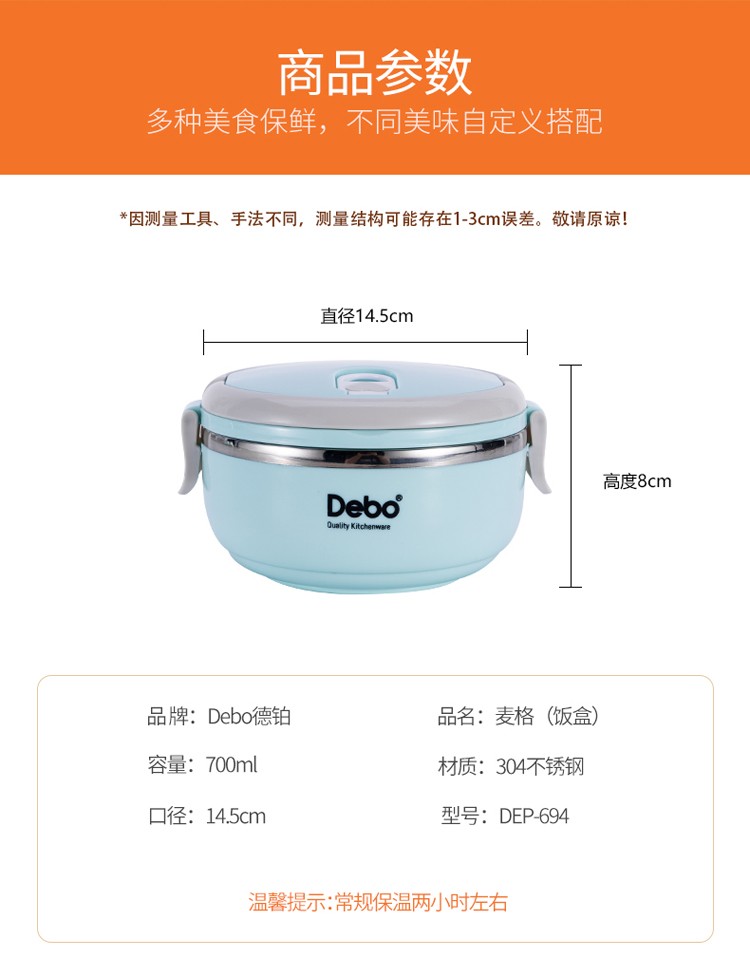 德铂 麦格 沃尔 单层保温饭盒 DEP-694