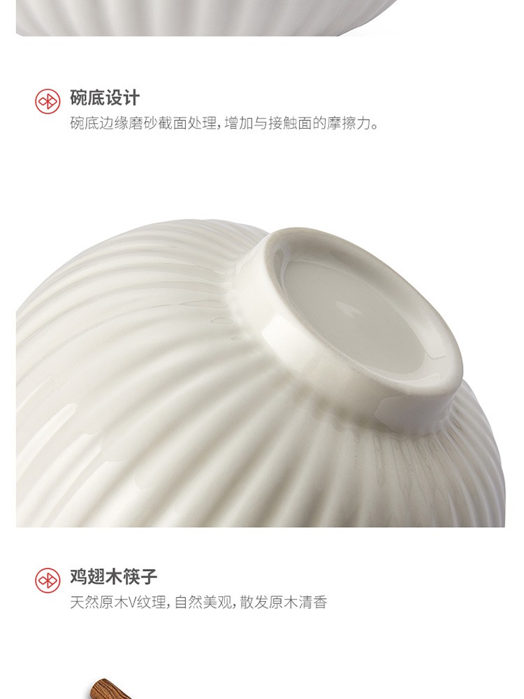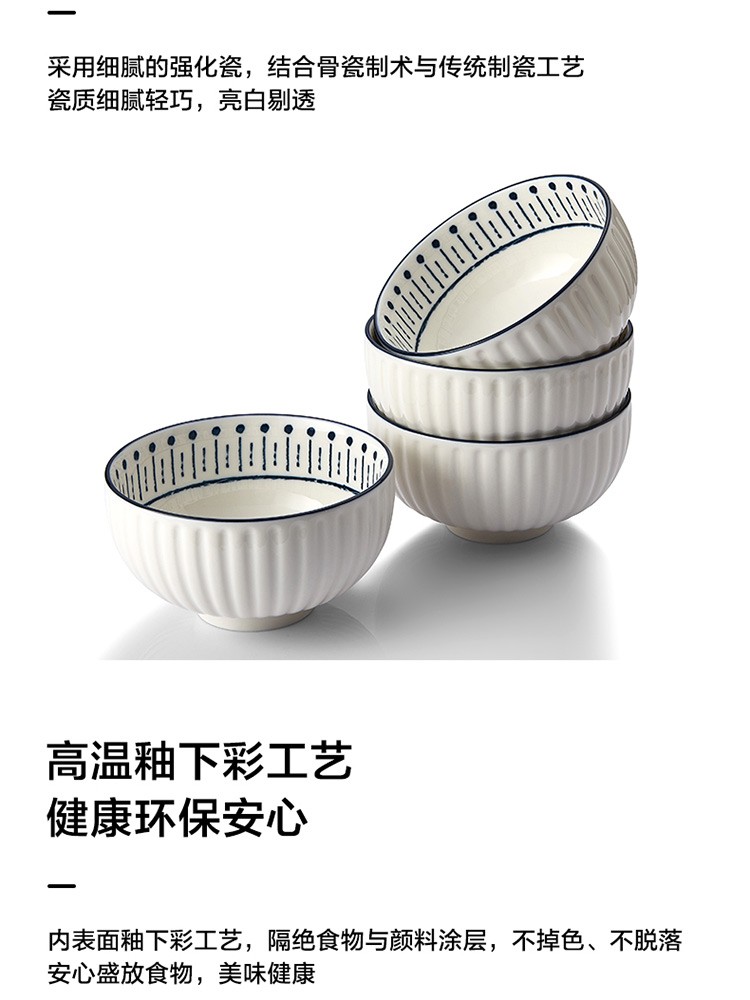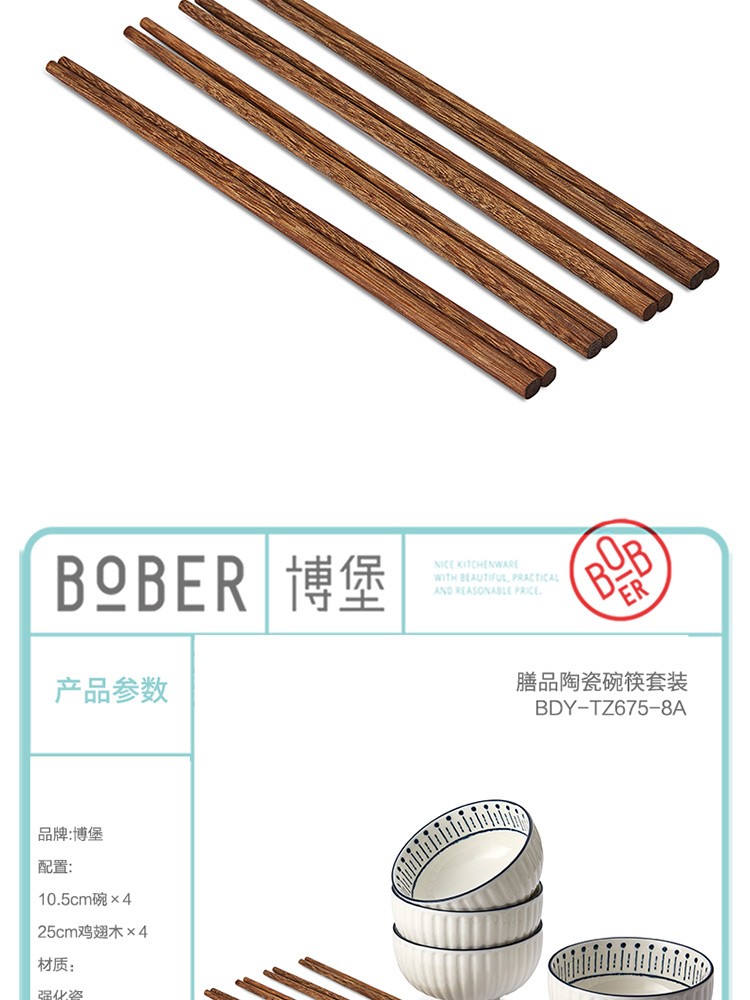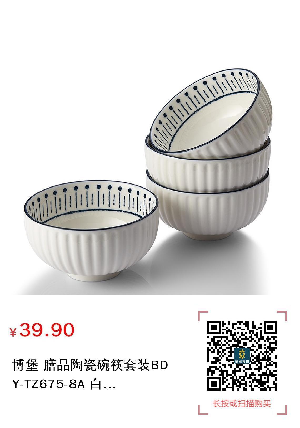 博堡 膳品陶瓷碗筷套装BDY-TZ675-8A 白色(4碗4筷)