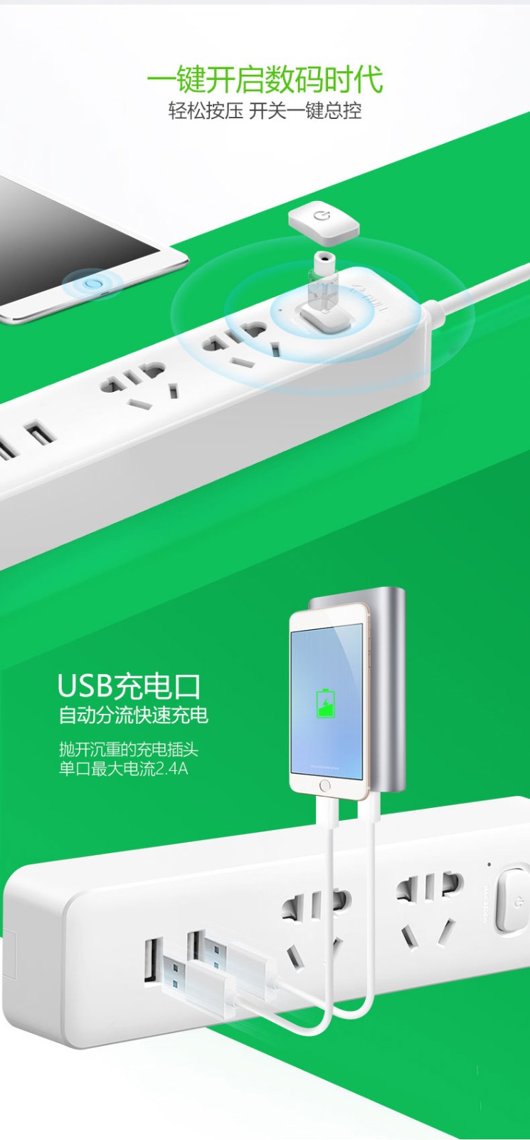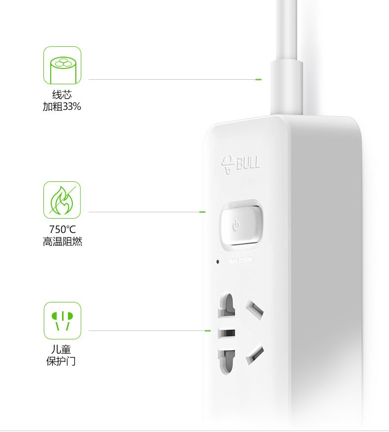 BULL公牛插排 USB智能插座GNV-UUA122