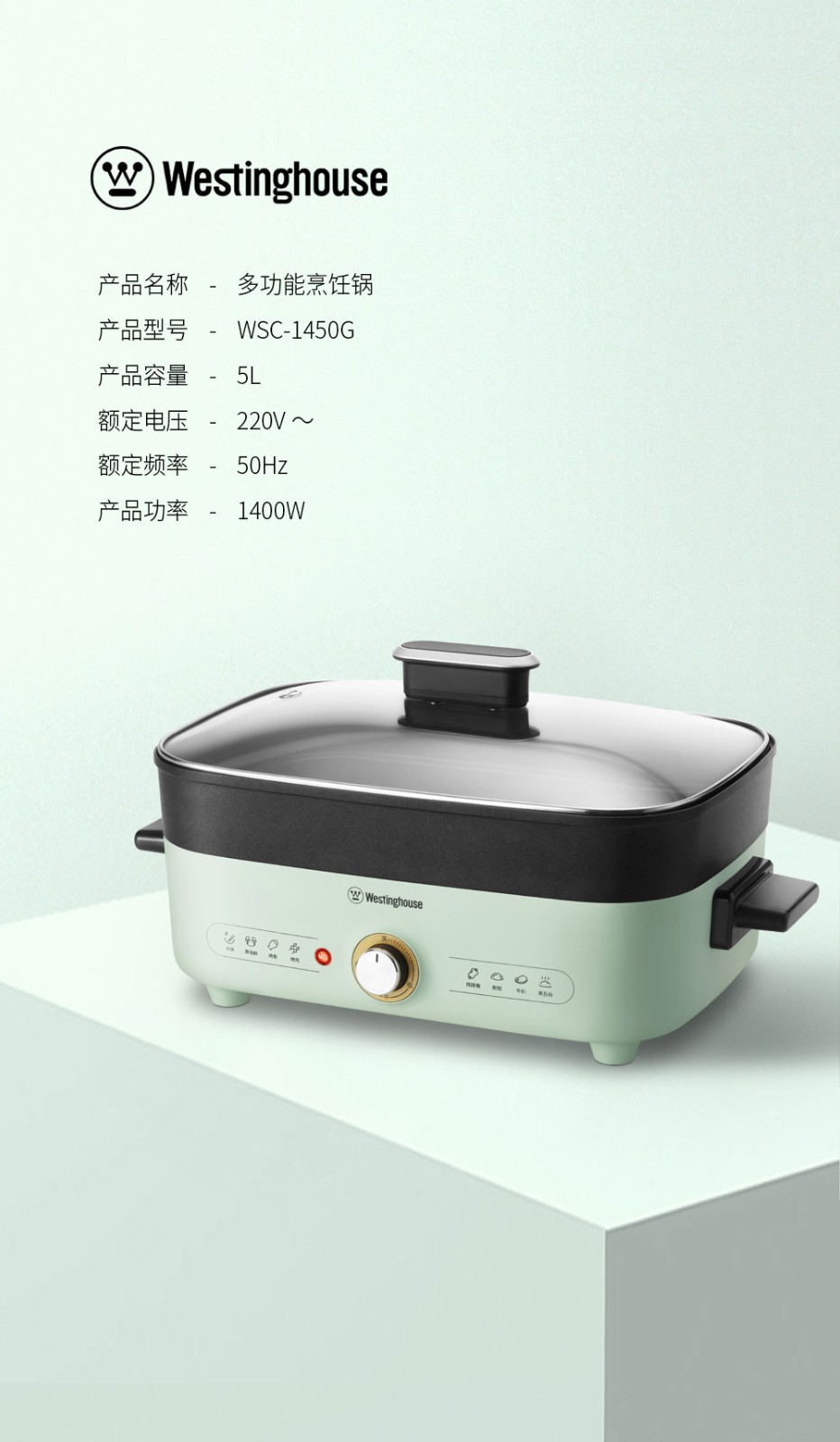 美国西屋Westinghouse-多功能锅WSC-1450G 炒锅 煎锅 火锅