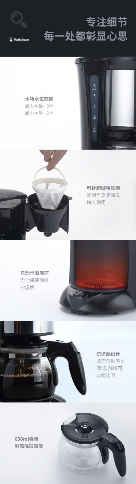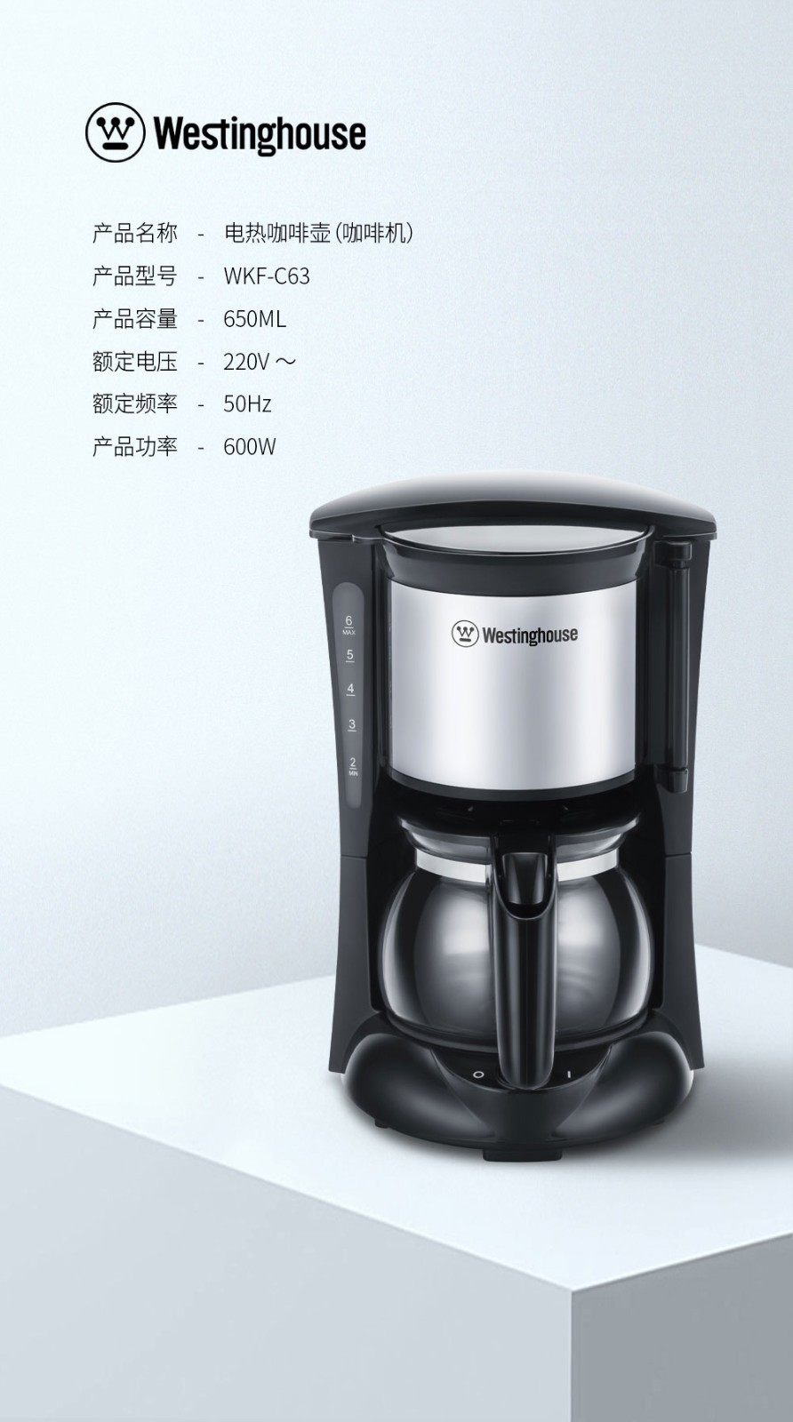美国西屋Westinghouse-电热咖啡壶(咖啡机)WKF-C63