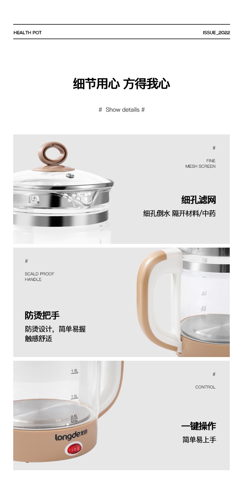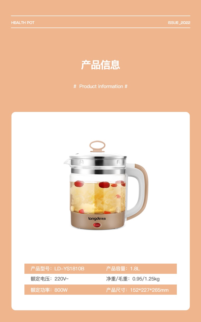 龙的养生壶LD-YS1810B 高硼硅玻璃煮茶壶全自动煎药壶花茶壶