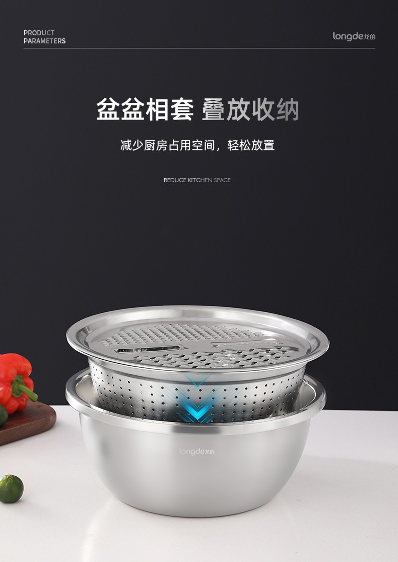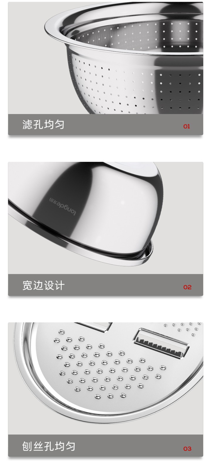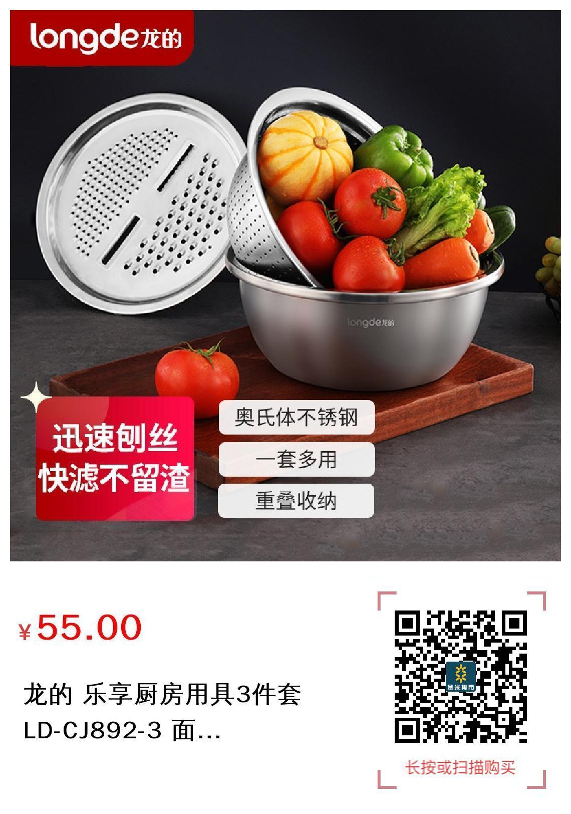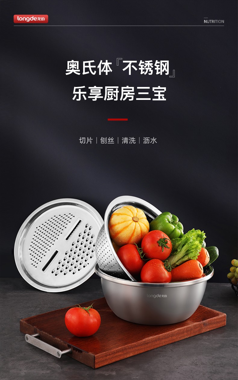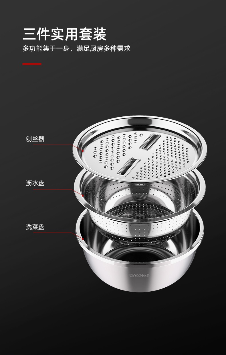 龙的 乐享厨房用具3件套 LD-CJ892-3 面盆 米筛 刨丝器