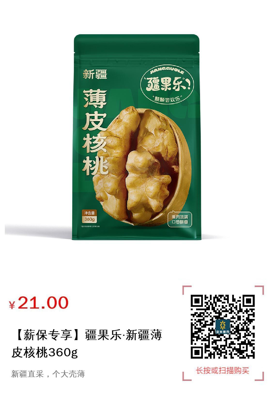 推广 【薪保专享】疆果乐·新疆薄皮核桃360g
