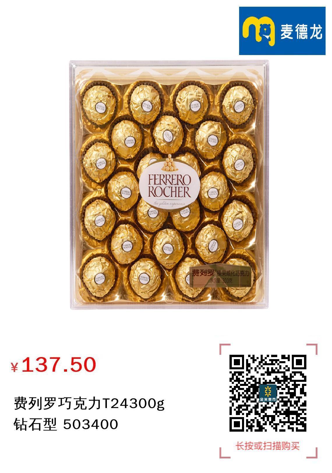 现金/积分 费列罗巧克力T24300g钻石型 503400